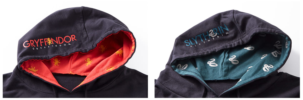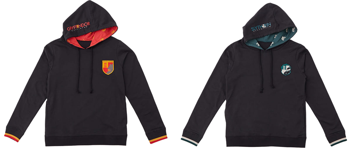 胸元には「グリフィンドール」と「スリザリン」の寮章がデザインされた刺繍が施されています。