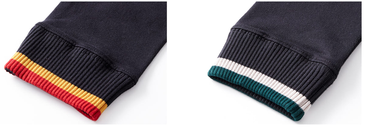 寮のイメージカラーを配色で入れた、袖口リブの端もアクセントになっています。