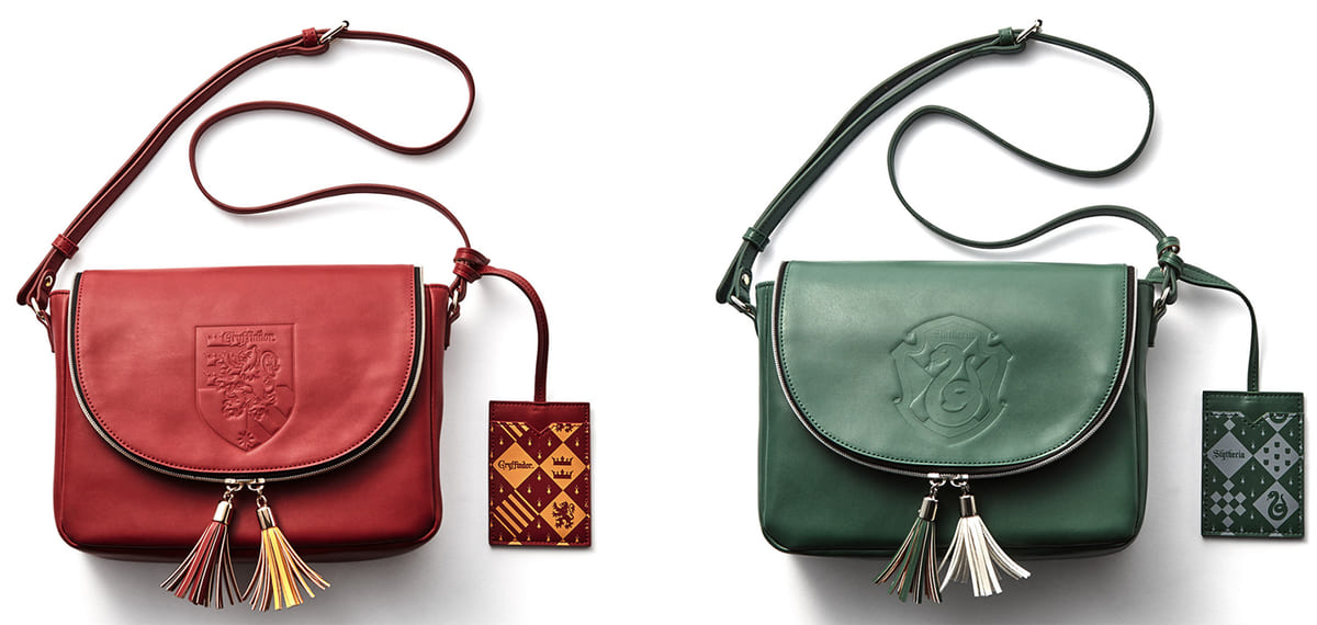 ショルダーバッグには、各寮のロゴやモチーフをプリントしたパスケースチャーム付き。