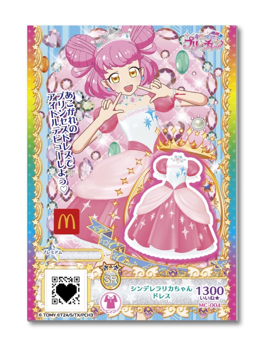 「シンデレラリカちゃんドレス」カードでは、ハッピーセット「リカちゃん」の「シンデレラリカちゃん」とお揃いのドレスを楽しめます。