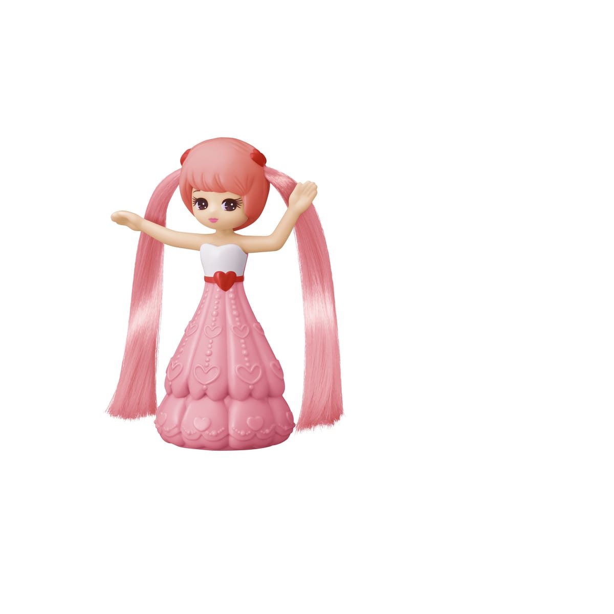 ピンクのツインテールと、お揃いの色のハートのドレスを着た「リカちゃん」