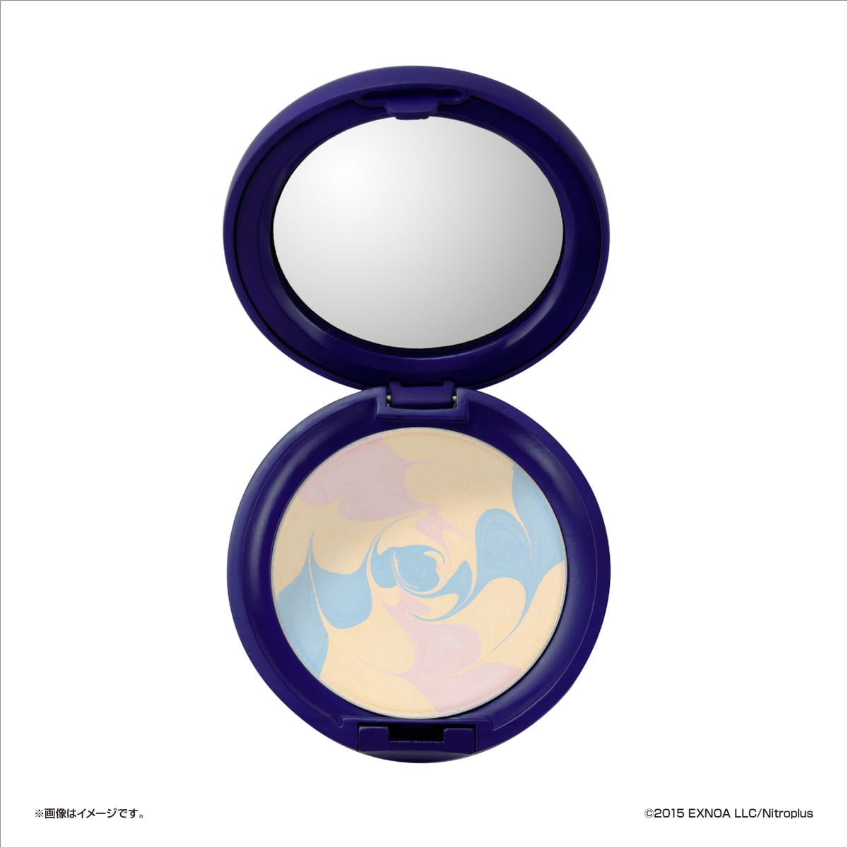 深いブルーの蓋を開けると、さわやかな色合いのおしろいが見えます。