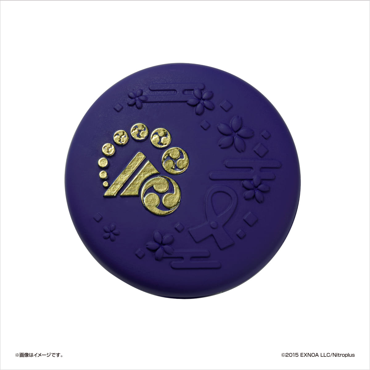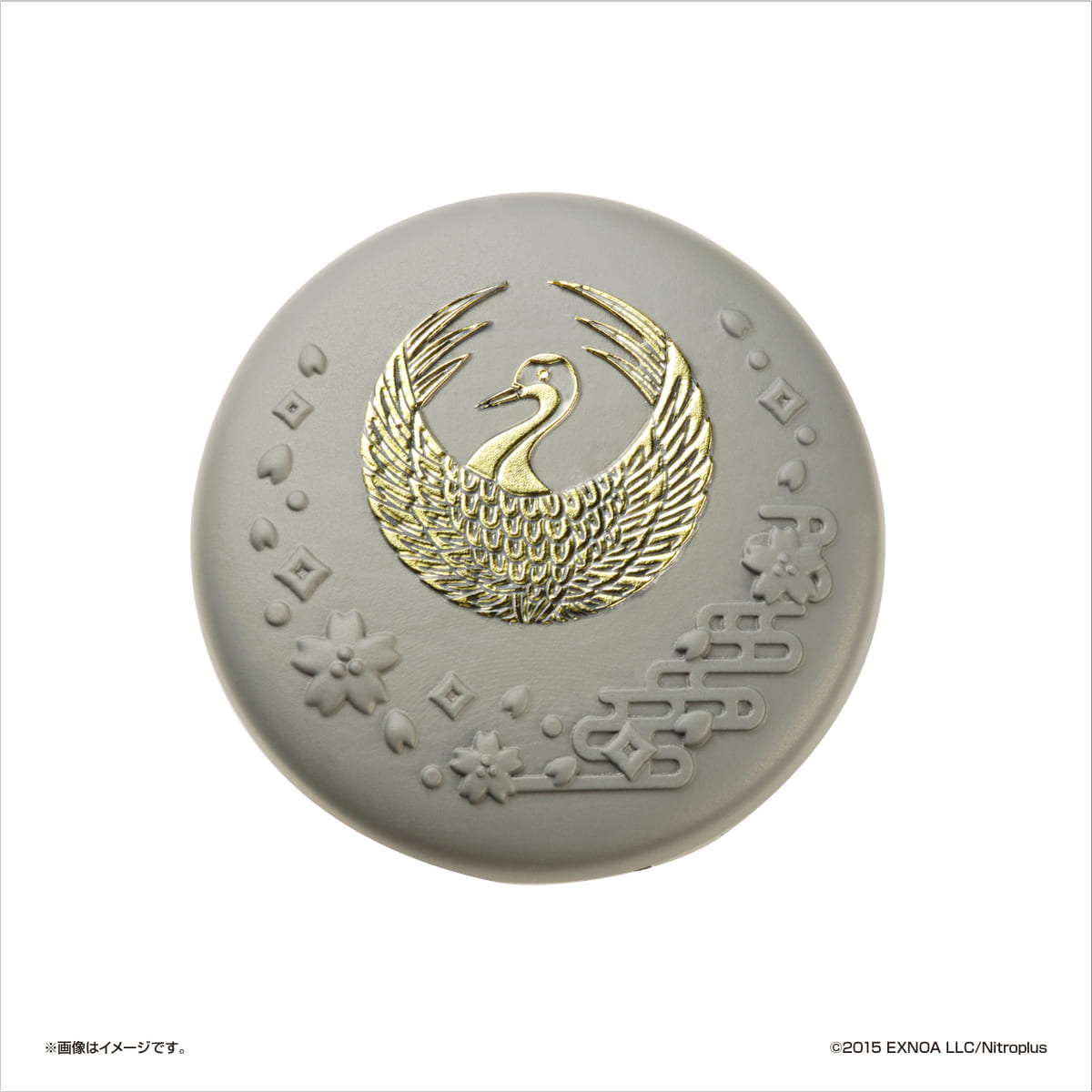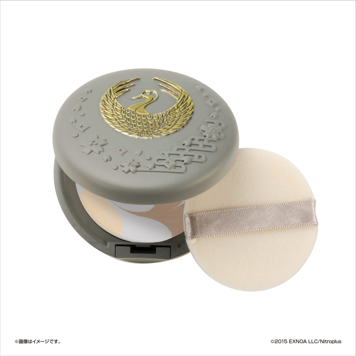 コンパクトケースには、刀剣男士をイメージしたデザインで金箔押しの紋があしらわれています。