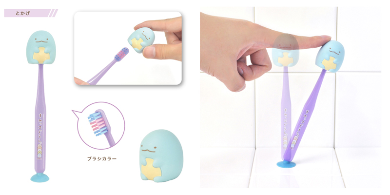 かわいいマスコットキャップと、便利な吸盤が付いた「すみっコぐらし」の歯ブラシ!