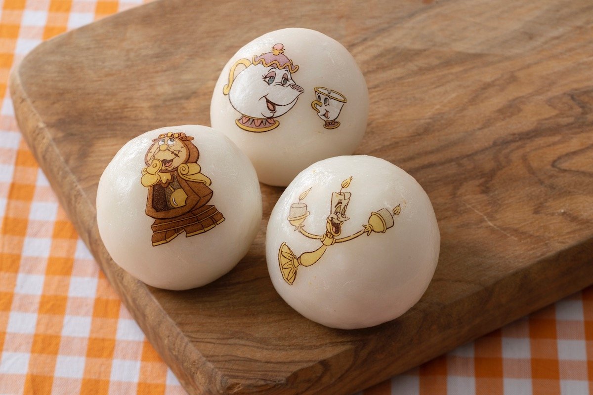 『美女と野獣』の人気キャラクターであるポット夫人、コグスワース、ルミエールがデザインされています。