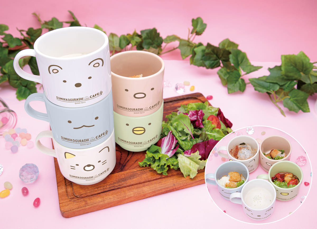 「すみっコ」たちのマグカップにミニフードを入れて提供されるスペシャルメニュー。