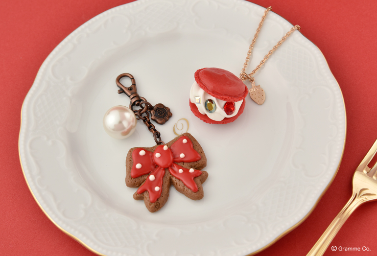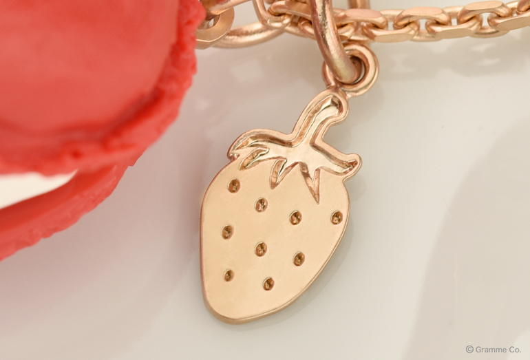 イチゴマカロンには、ストロベリーが刻印されたチャームが付属されます。