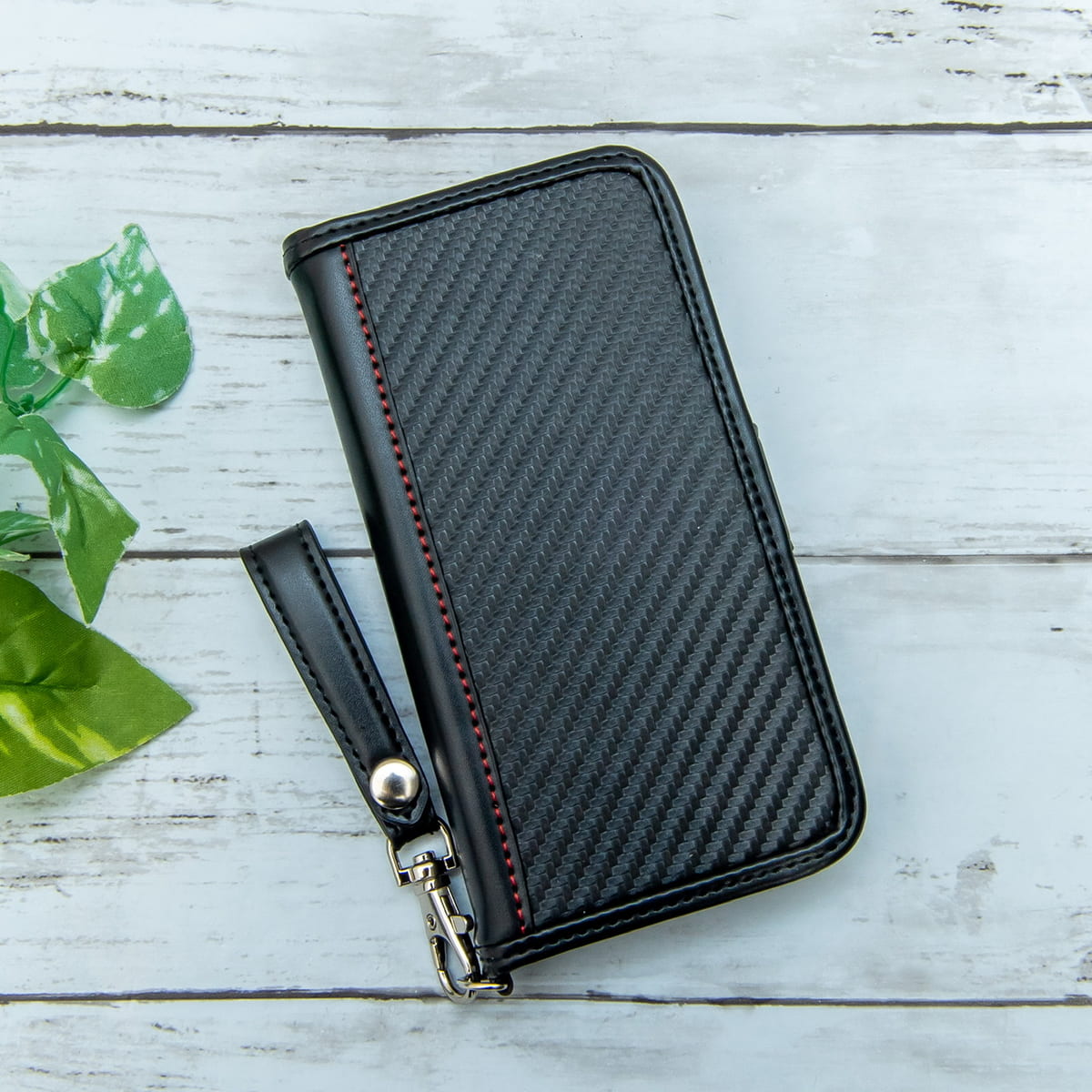 シックで高級感のあるカーボン調のポリウレタン素材を使用したフリップカバー。