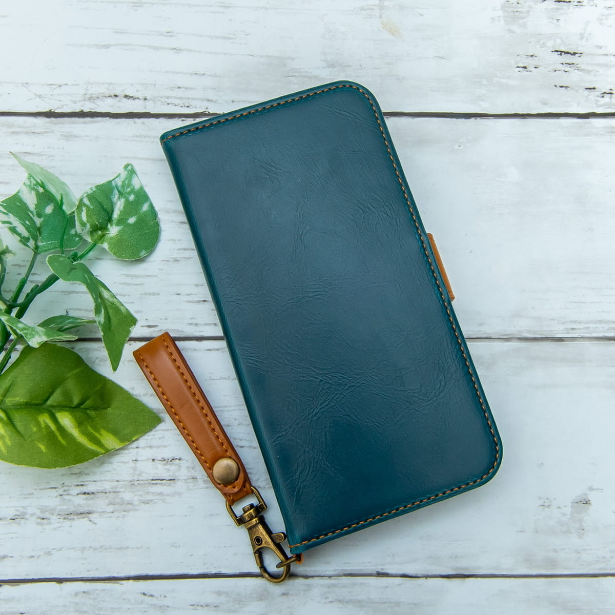 ブルーと相性の良いブラウンのフィンガーストラップ付き。