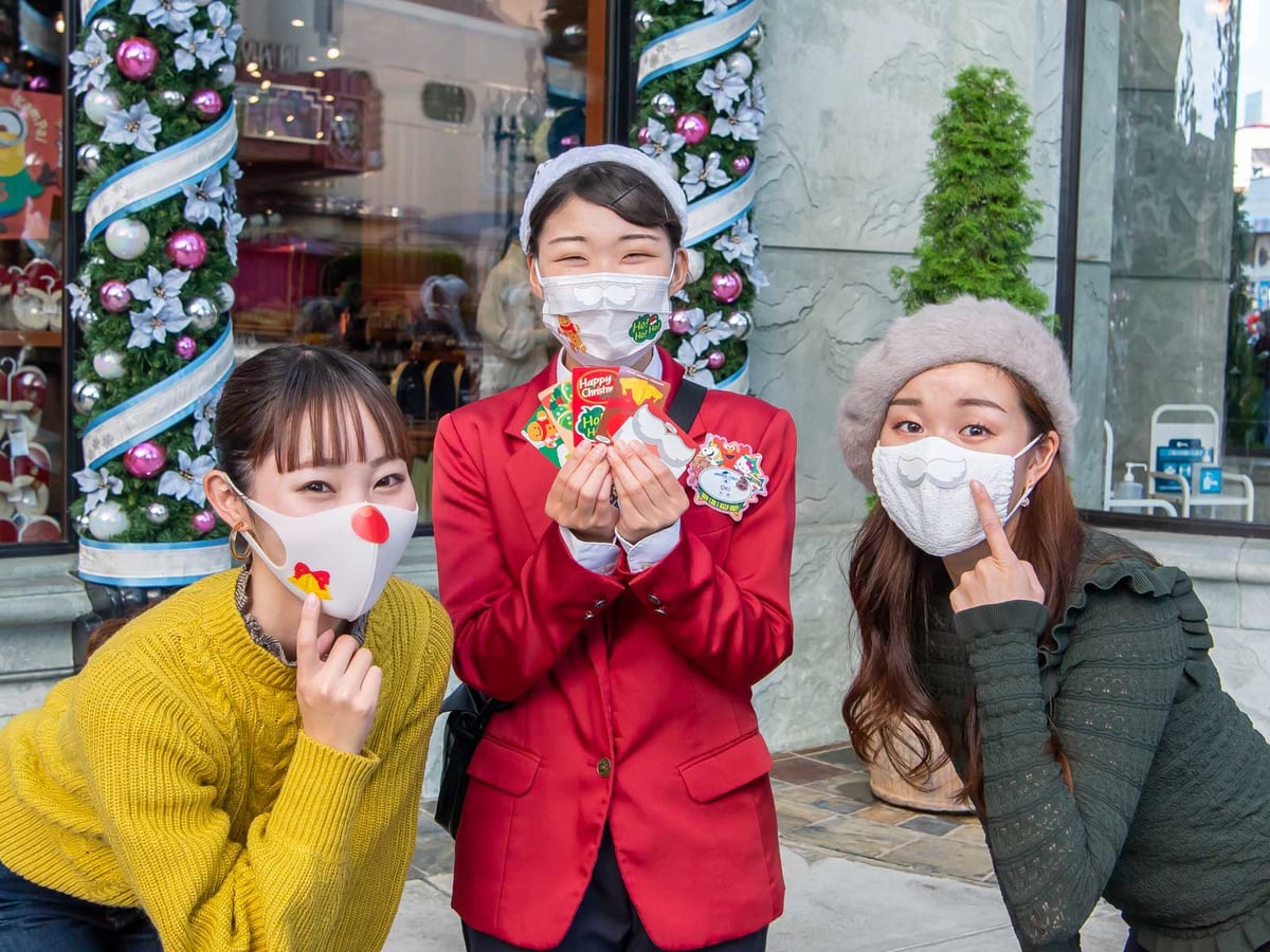 クルーに合言葉を伝えると、とっても可愛いクリスマス・デザインの“デコ・マスク”ステッカーが手に入ります。