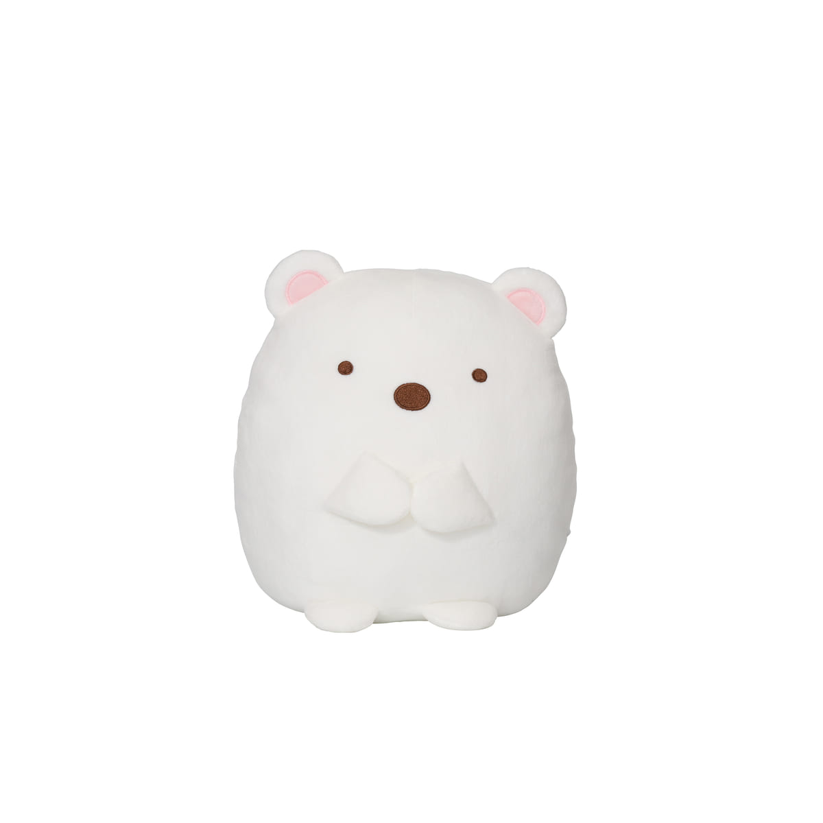 すみっこに集まるのが好きなキャラクターの個性的な世界観が伝わる、膝の上にちょこんと座るデザインです。
