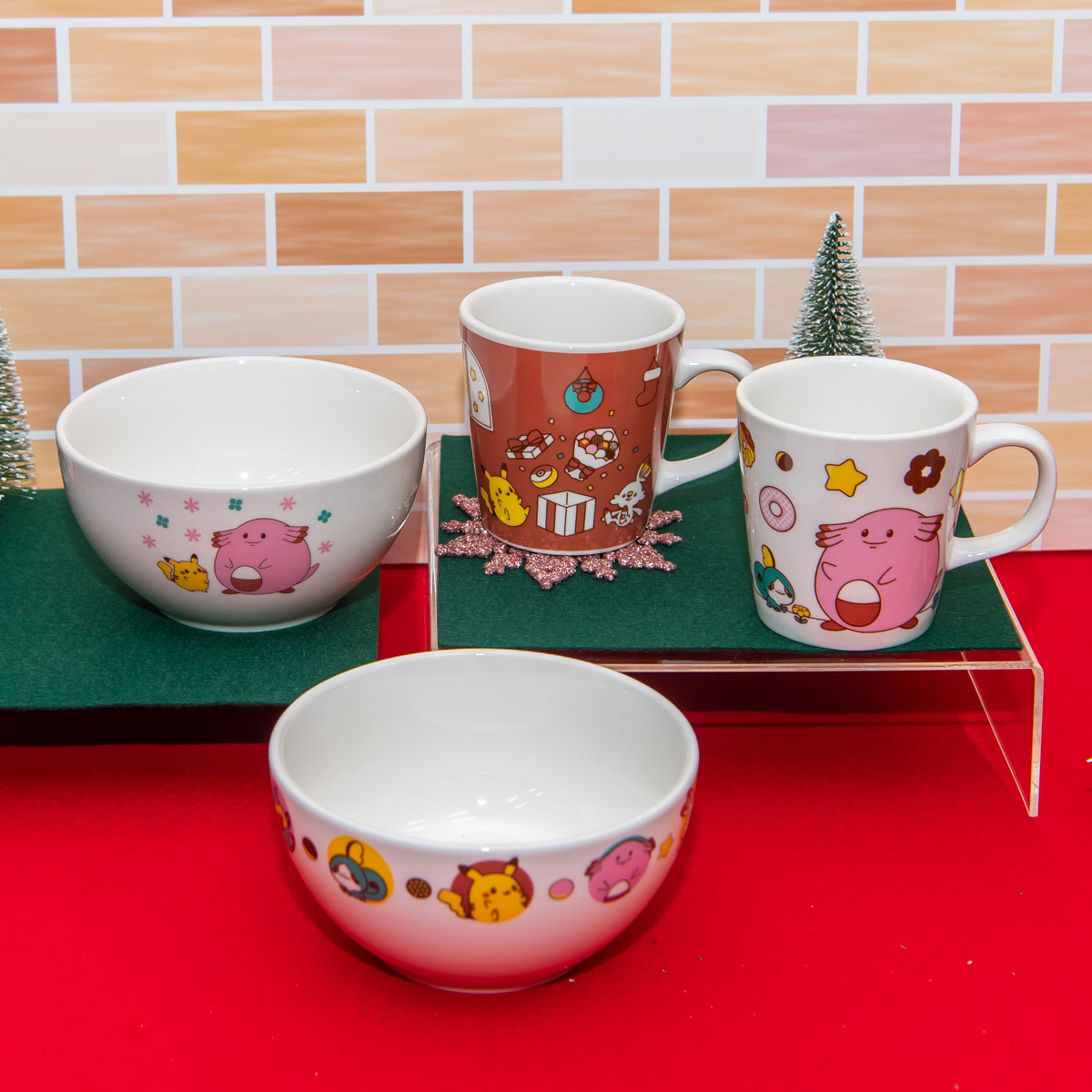 さらにドーナツとグッズを一度に楽しめるクリスマスセットには「ピカチュウ」や「ラッキー」などが描かれた本コラボオリジナルデザインの「ミスド ポケモン ボウル」と「ミスド ポケモン マグカップ」を用意。
