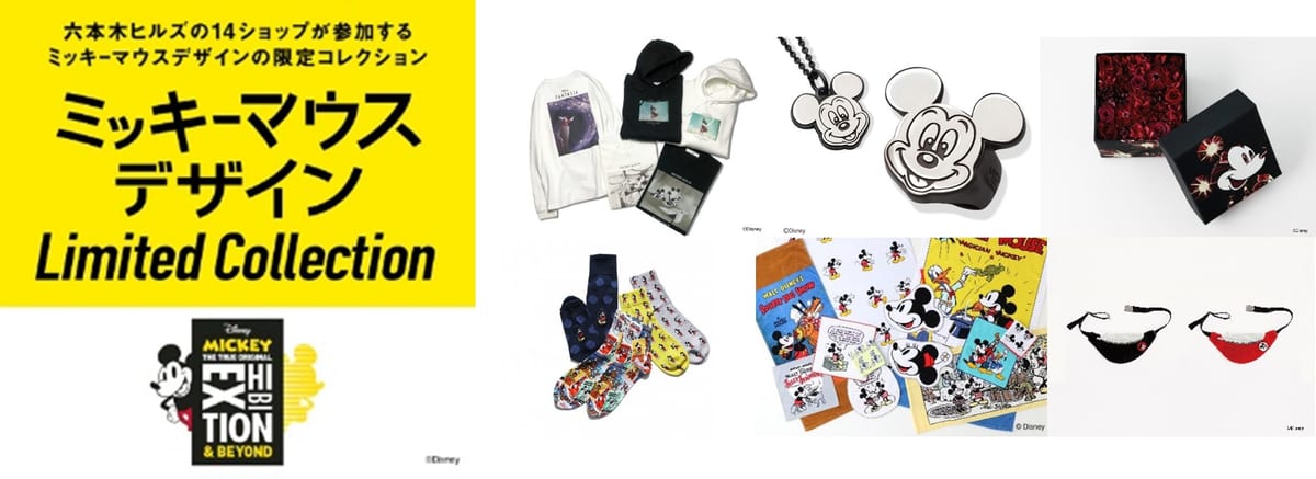 展覧会を盛り上げるために、六本木ヒルズ内のファッションアイテムやライフスタイルグッズを取り扱う14店舗で「ミッキーマウス」をモチーフにした六本木ヒルズだけのリミテッドコレクションアイテムを用意。