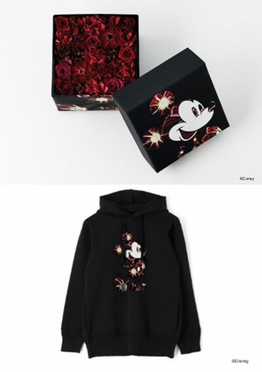今回のためにニコライ バーグマンが「ミッキーマウス」を花で表現したデザインをエストネーションのオリジナルウェアに落とし込んだフーディー。