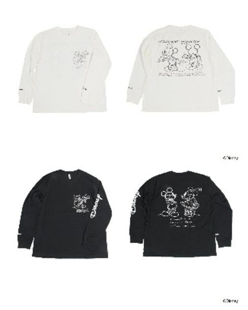 ディズニーアニメーション制作時の過程を描いたモデルシートのアートがプリントされた、アタッチメントの「ロングスリーブTシャツ」