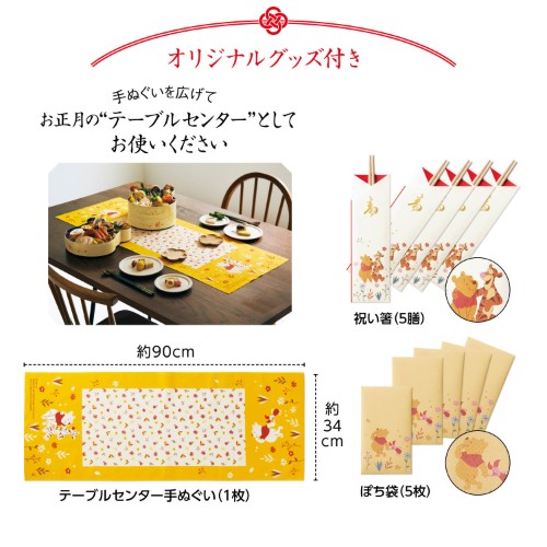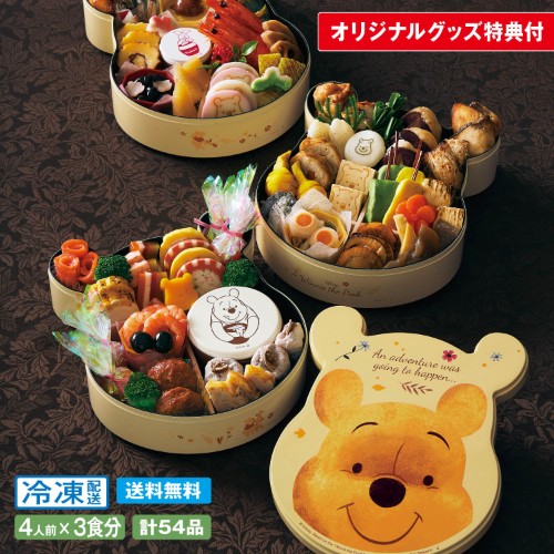 4人×3食分、「くまのプーさん」デザインの食材も入ったキュートなおせち。