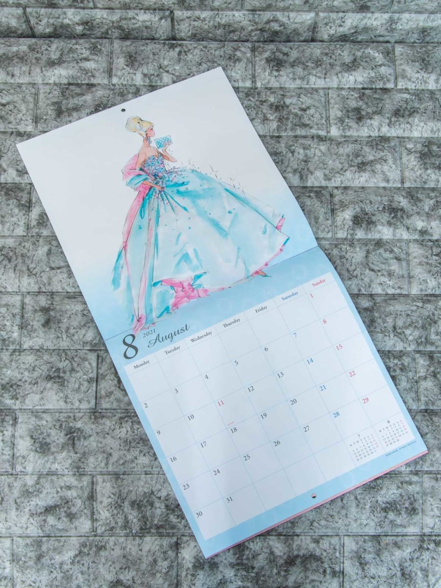 「バービー」の素敵なドレスを毎月楽しめる壁掛けタイプのカレンダー。