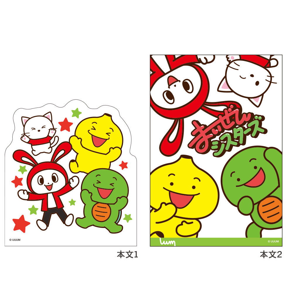 「ぜんいち&キャリーちゃん」「まいっきー&バナナくん」コンビがそれぞれに描かれた「まいぜんシスターズ」
