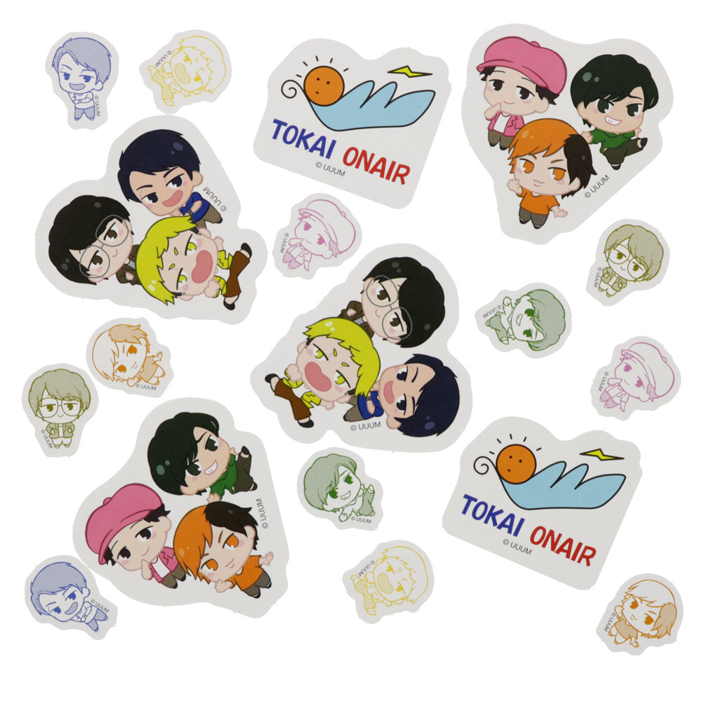 小サイズのシールにシンプルカラーでメンバー一人一人が描かれた「東海オンエア」が展開されます。
