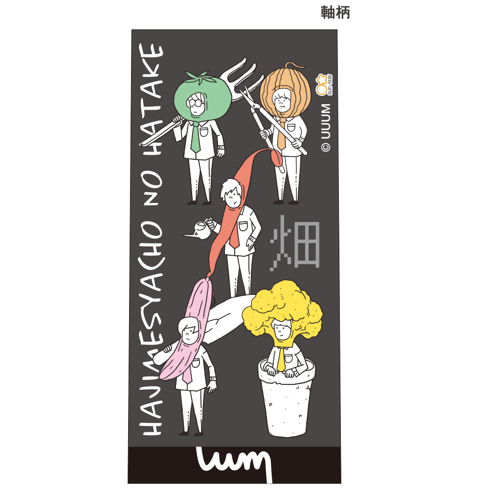 オモテ面に野菜のかぶりものを身に着けたメンバーと、ウラ面に野菜のシルエットと”畑”の文字がプリントされた「はじめしゃちょーの畑」柄や