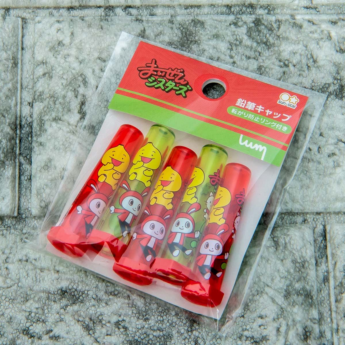 転がり防止のリングが付いた、便利な「鉛筆キャップ」の「まいぜんシスターズ」デザイン。