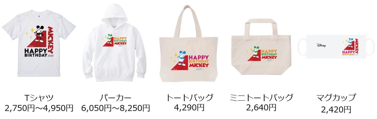 ミッキーマウスの誕生日をお祝いして作られた、2020年だけの特別なもので、Tシャツやトートバッグなどお気に入りのアイテムに組み合わせることができます。