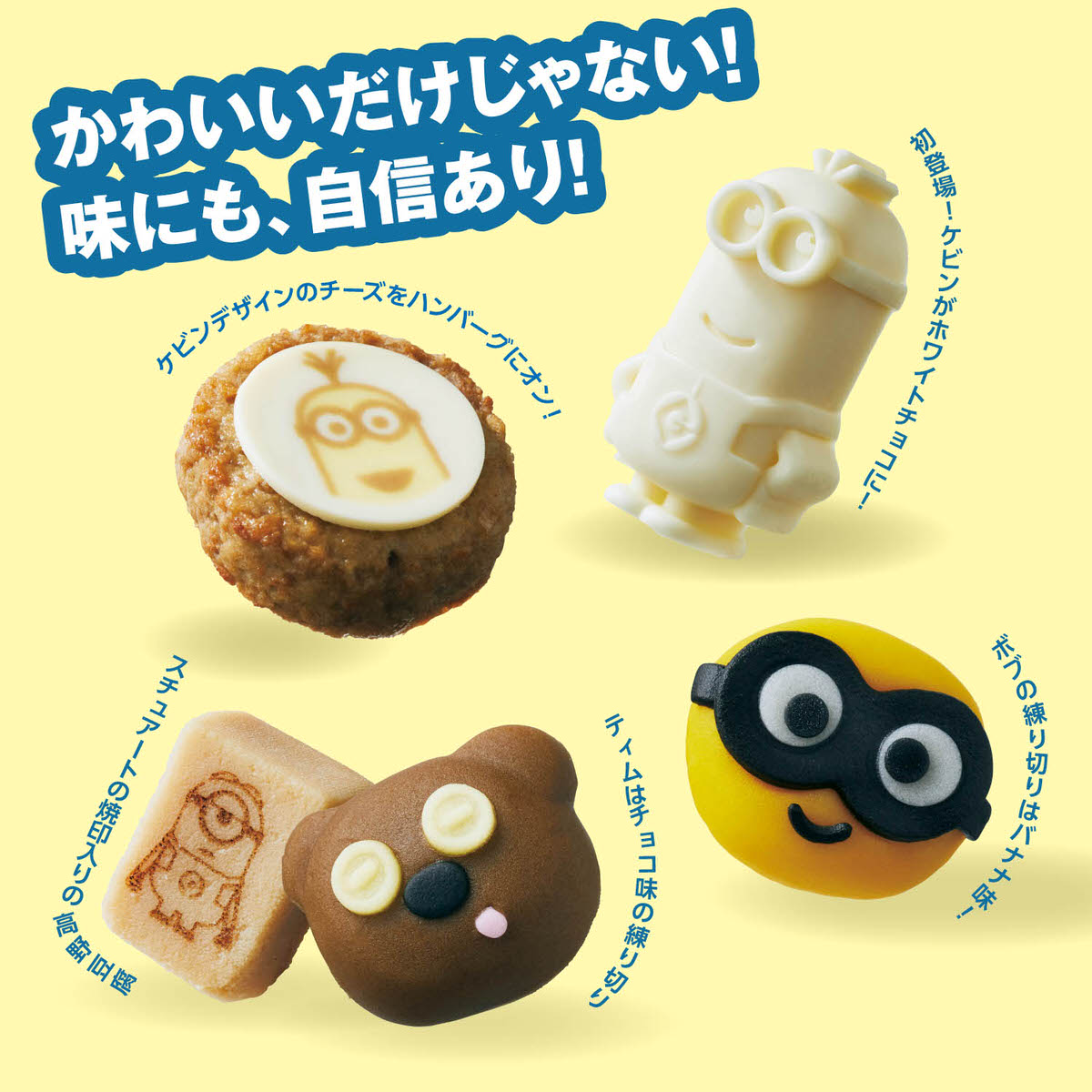 「ケビン」のホワイトチョコや、バナナ味で再現された「ボブ」の練り切りなどのスイーツも盛り込まれます。