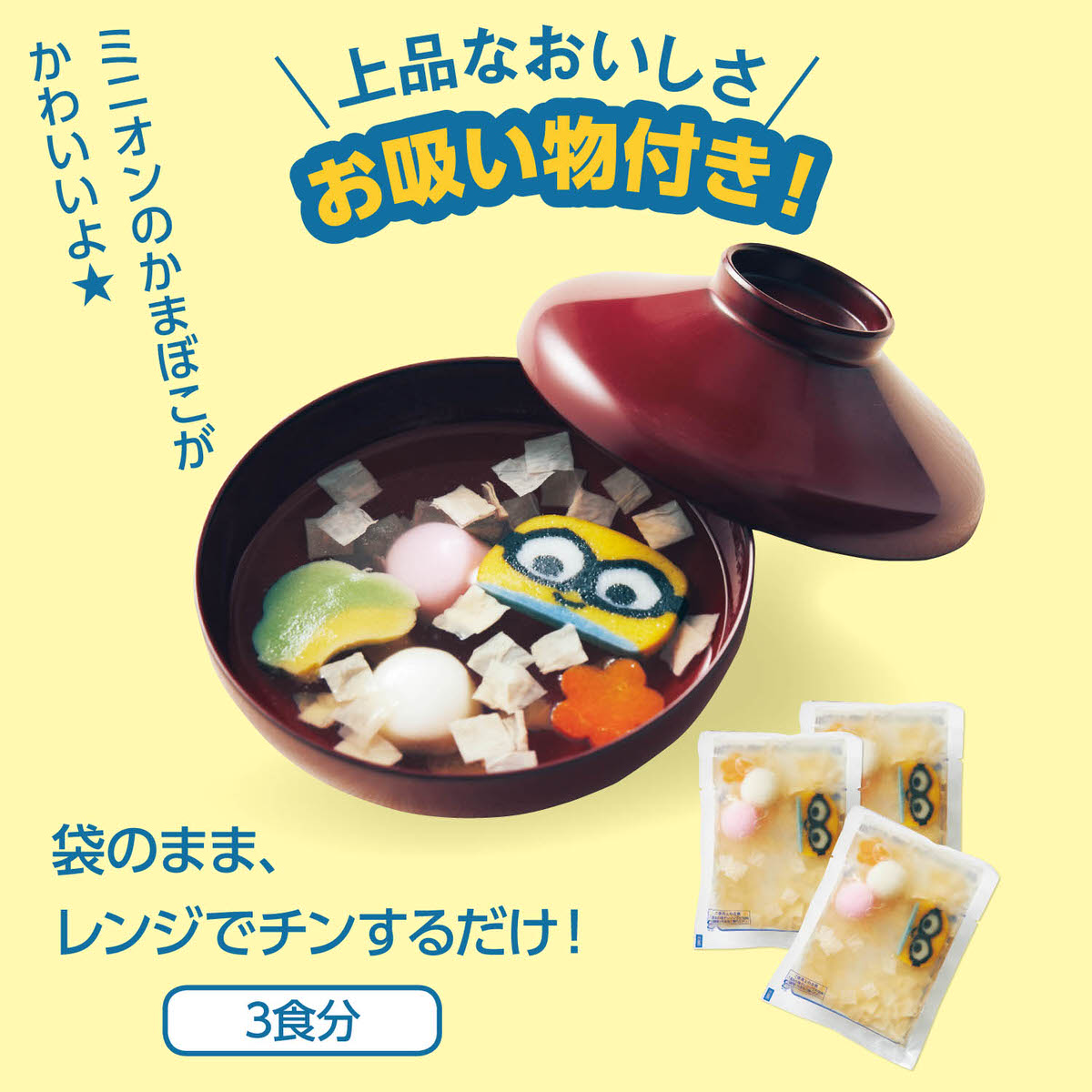 さらに、袋のまま温められる「ミニオン」のお吸い物付き。