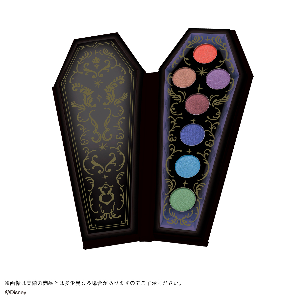 ゲーム内に登場するモチーフをイメージした、金色の箔押しがあしらわれた「『ディズニー ツイステッドワンダーランド』アイシャドウパレット」