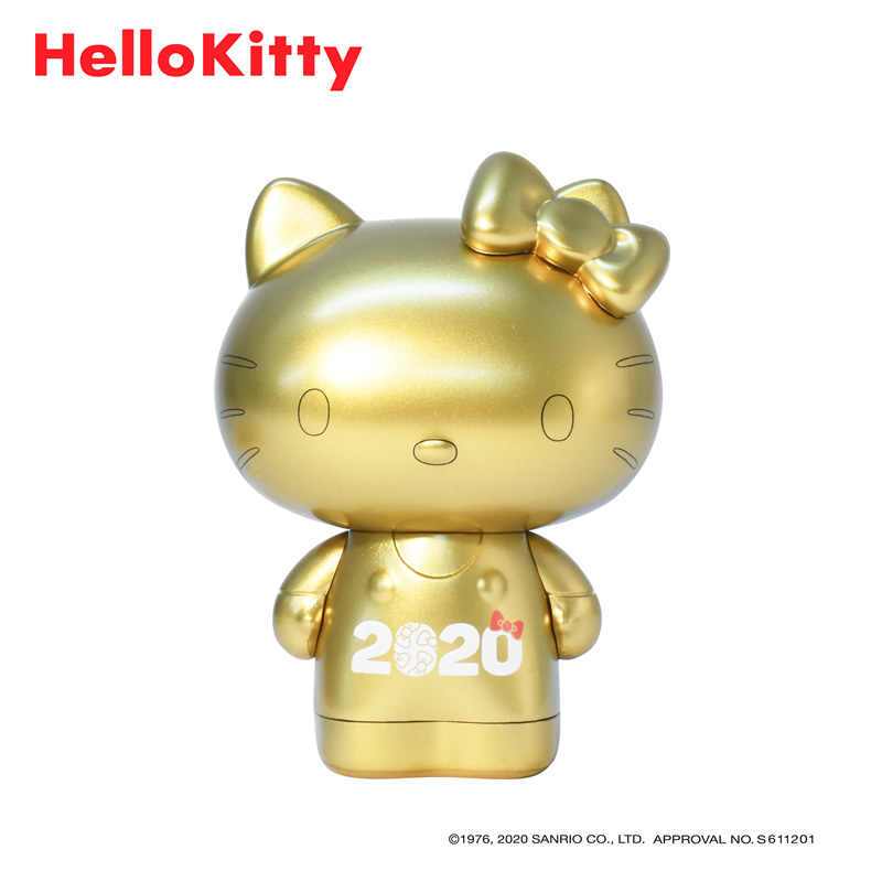 ゴージャスなゴールドカラーの「ハローキティ」の胸には、「2020」の文字が。