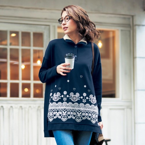 裏起毛素材と襟のボアでぬくぬくと着れるチュニック。