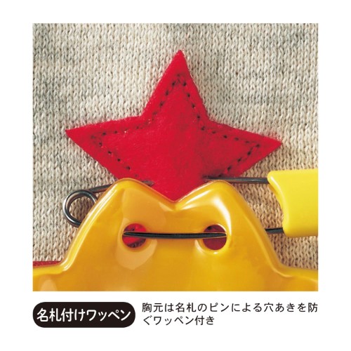 また、名札による生地の穴あきを防ぐ名札付けワッペンも付いています。