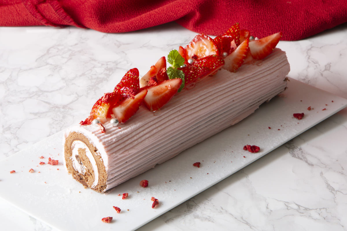 見た目にも可愛らしい“いちごのブッシュ・ド・ノエル”は、中に入ったチョコチップが食感までも楽しませてくれます。