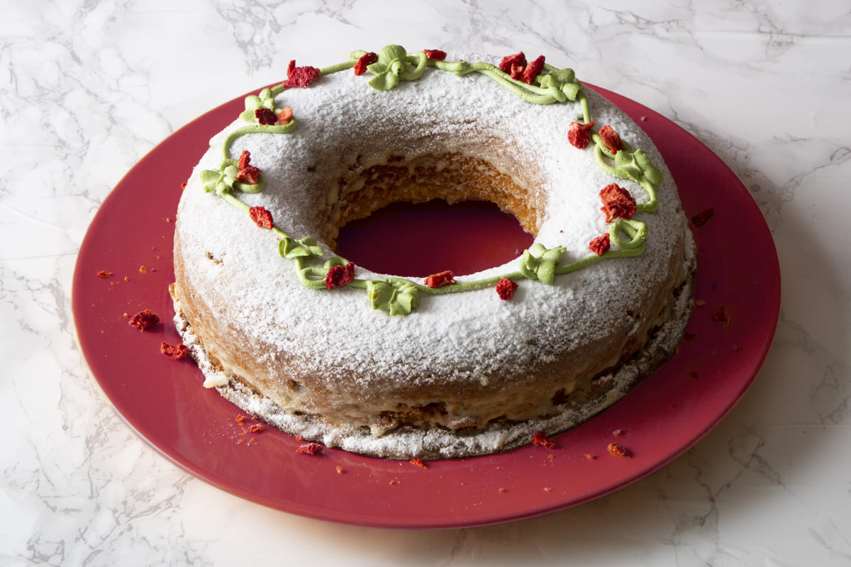生地にはちみつを混ぜ合わせ、しっとりと柔らかな生地が楽しめるシュトーレン風のケーキ。