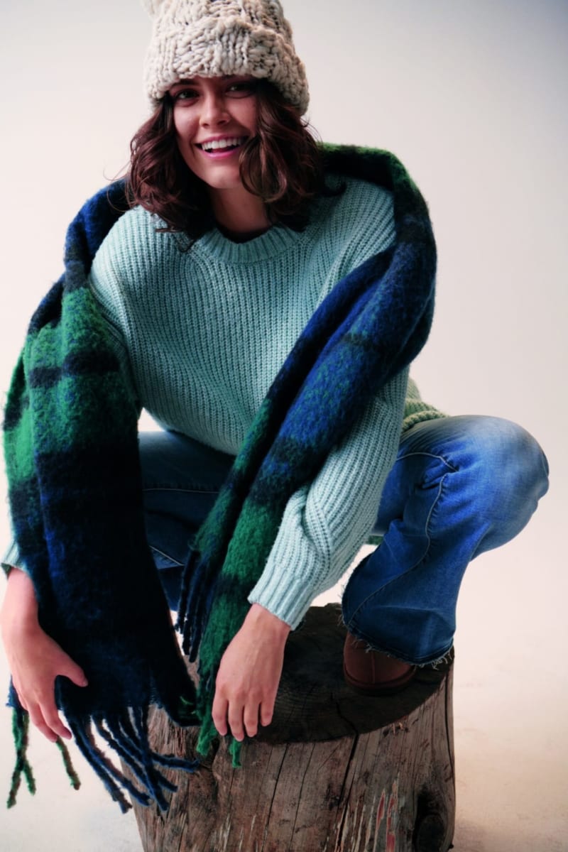 また青いコバルトの色合いと緑や海の色、このニュートラルなトーンは、寒い冬の日でも気分を明るくし、永遠のワードローブとなること間違いなし。