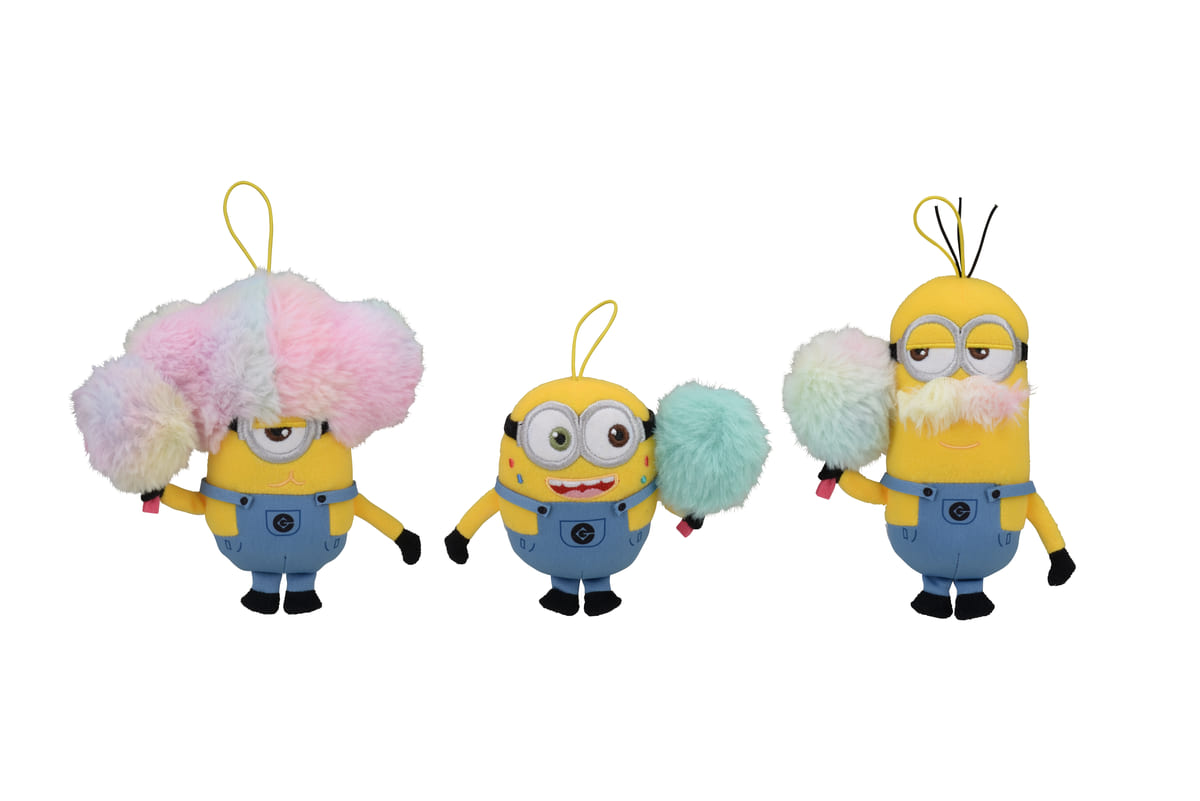色とりどりのわたあめを楽しむ「ボブ」「ケビン」「スチュアート」のマスコット。