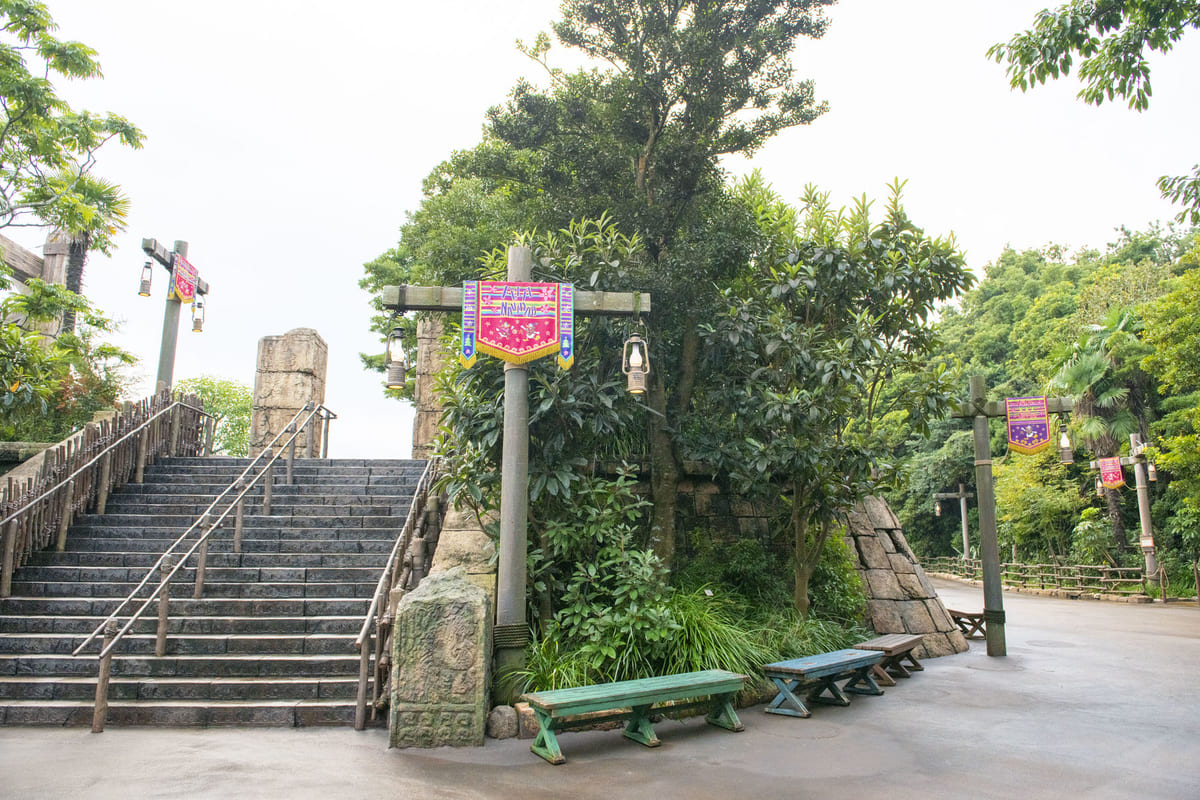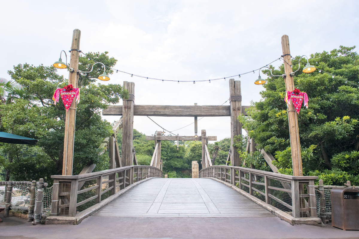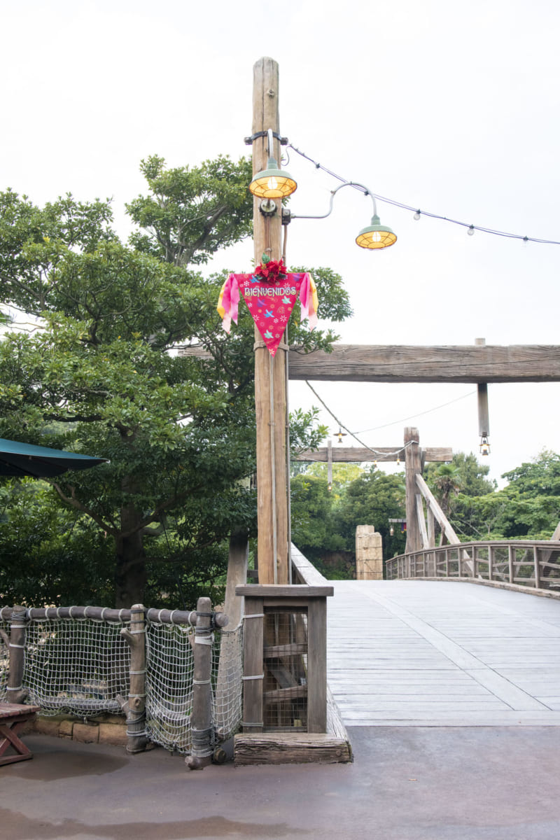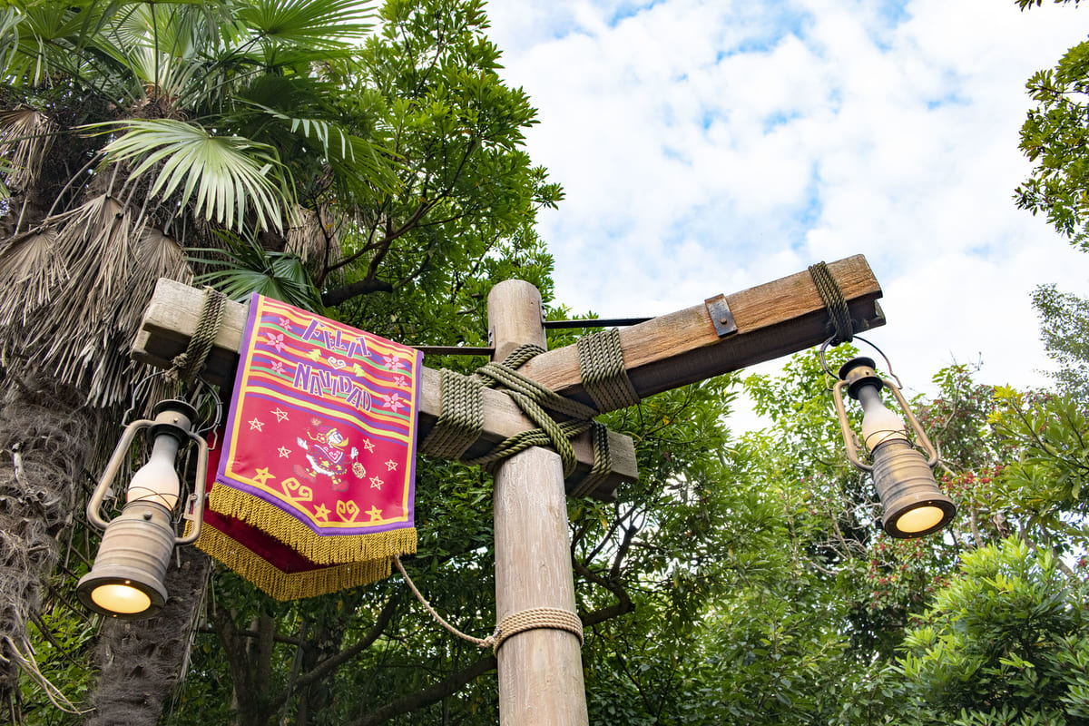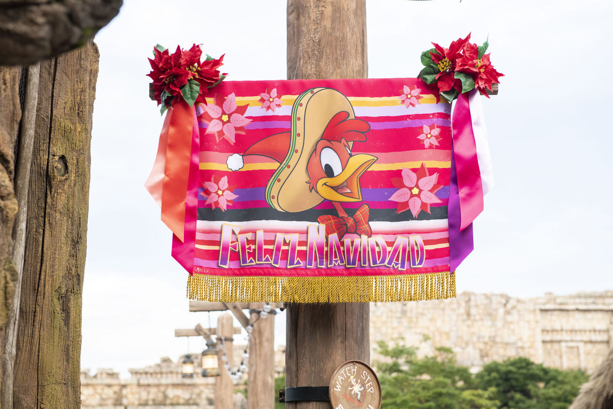 パークの中心部「メディテレーニアンハーバー」の外灯にもクリスマスカラーのデコレーションが施されています。
