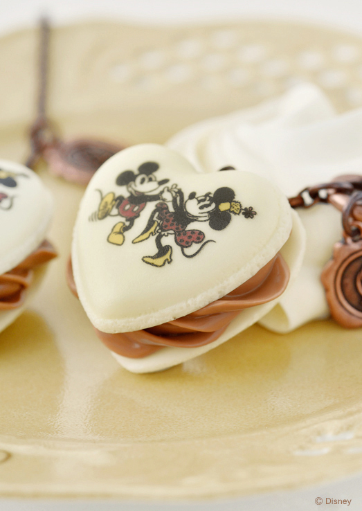 クラシカルな「ミッキーマウス」と「ミニーマウス」の姿が描かれた、どこかノスタルジックなハートマカロンが誕生。