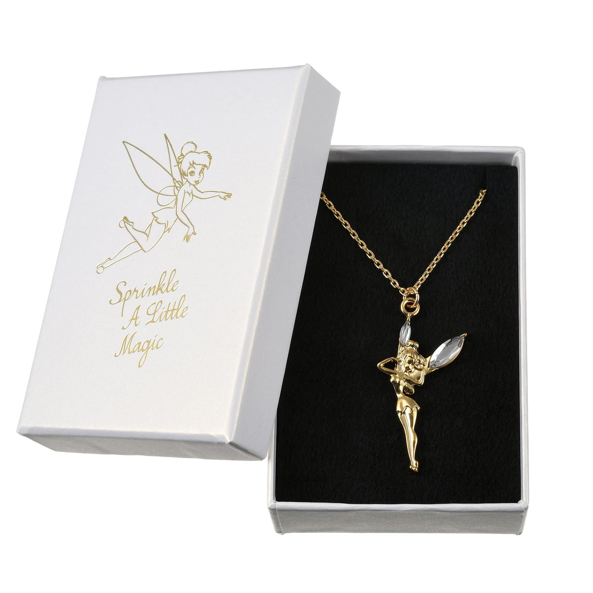 優雅に空を舞う「ティンカー・ベル」がボックスに箔押しされた「ネックレス」
