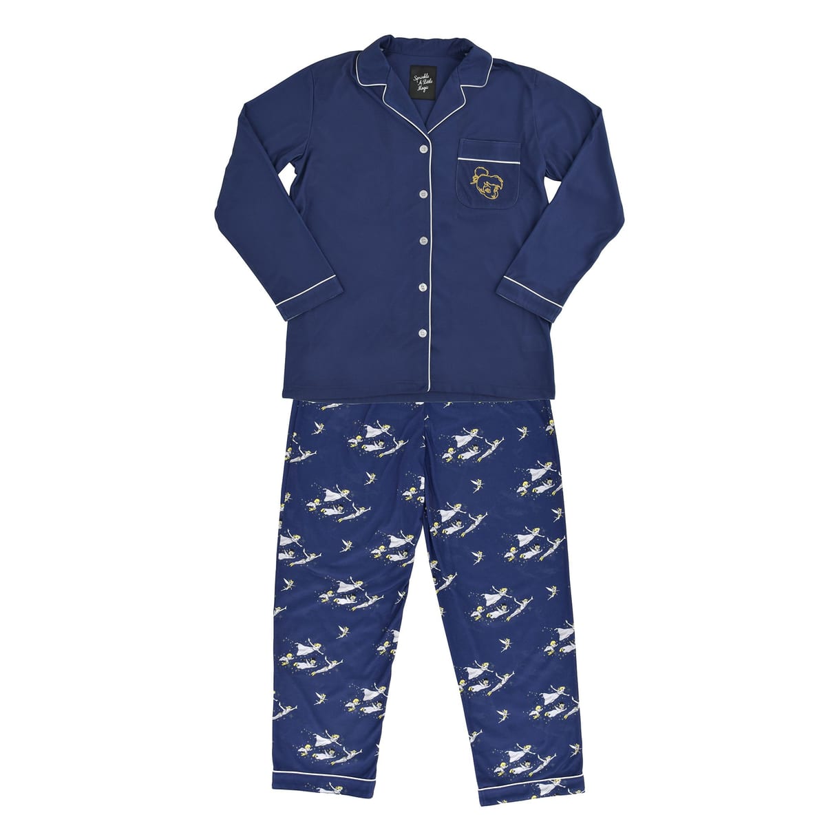 トップスの胸ポケットは「ティンカー・ベル」が刺しゅうされており、ゴールドにきらめいてとっても華やか!