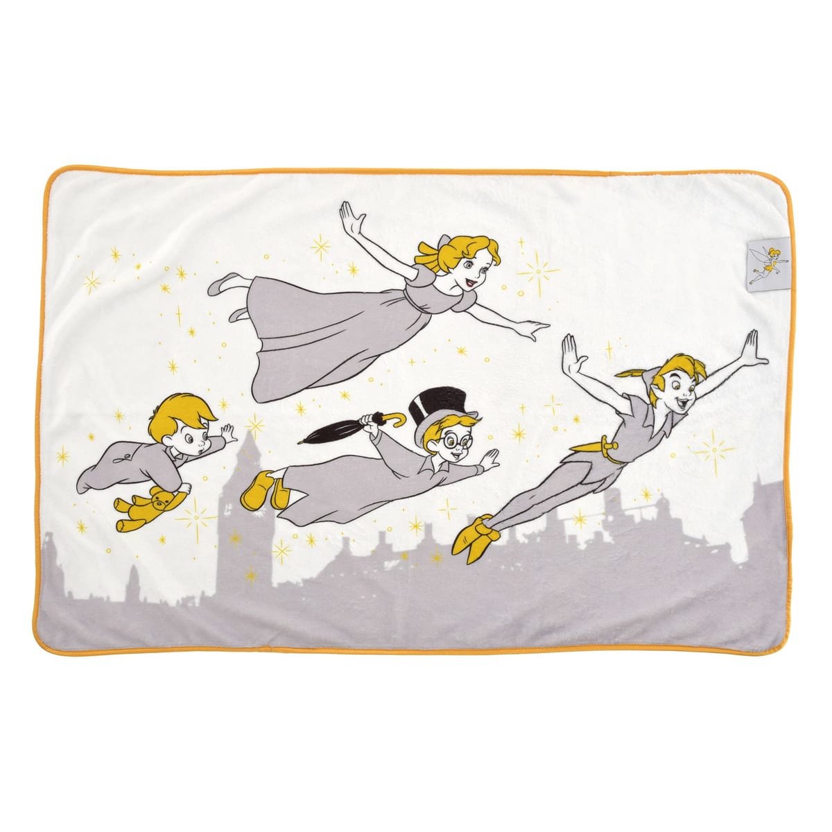 「ピーター・パン」や「ウェンディ」「ジョン」「マイケル」が夜空を飛んでいるシーンと「ティンカー・ベル」とロゴがプリントされた総柄のリバーシブル仕様になっています。
