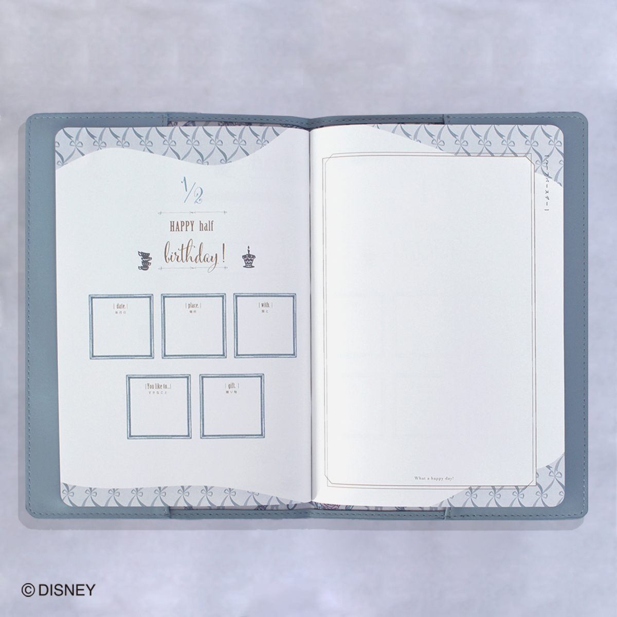 お隣の空欄のページにはお誕生日のお祝いの写真を貼ったり、家族からのお祝いのメッセージを寄せ書きしたりアイデア次第!