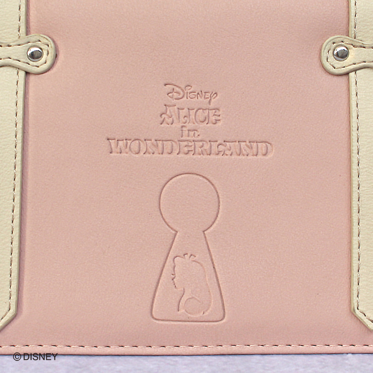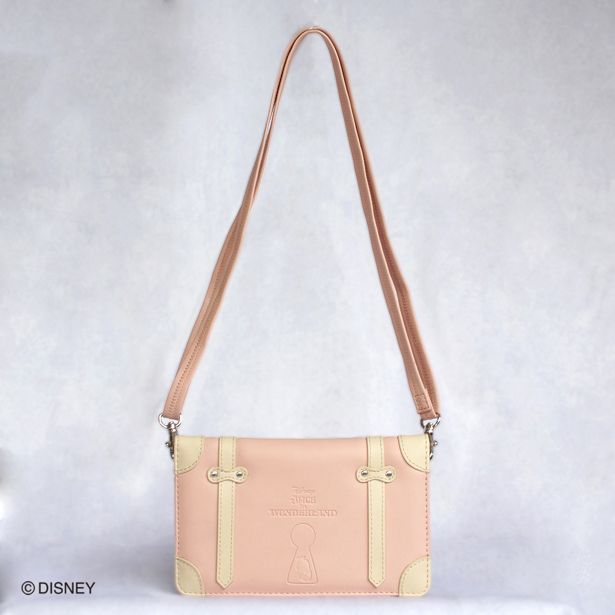 鍵穴から覗くアリスの型押しがポイントのマルチショルダーケース。