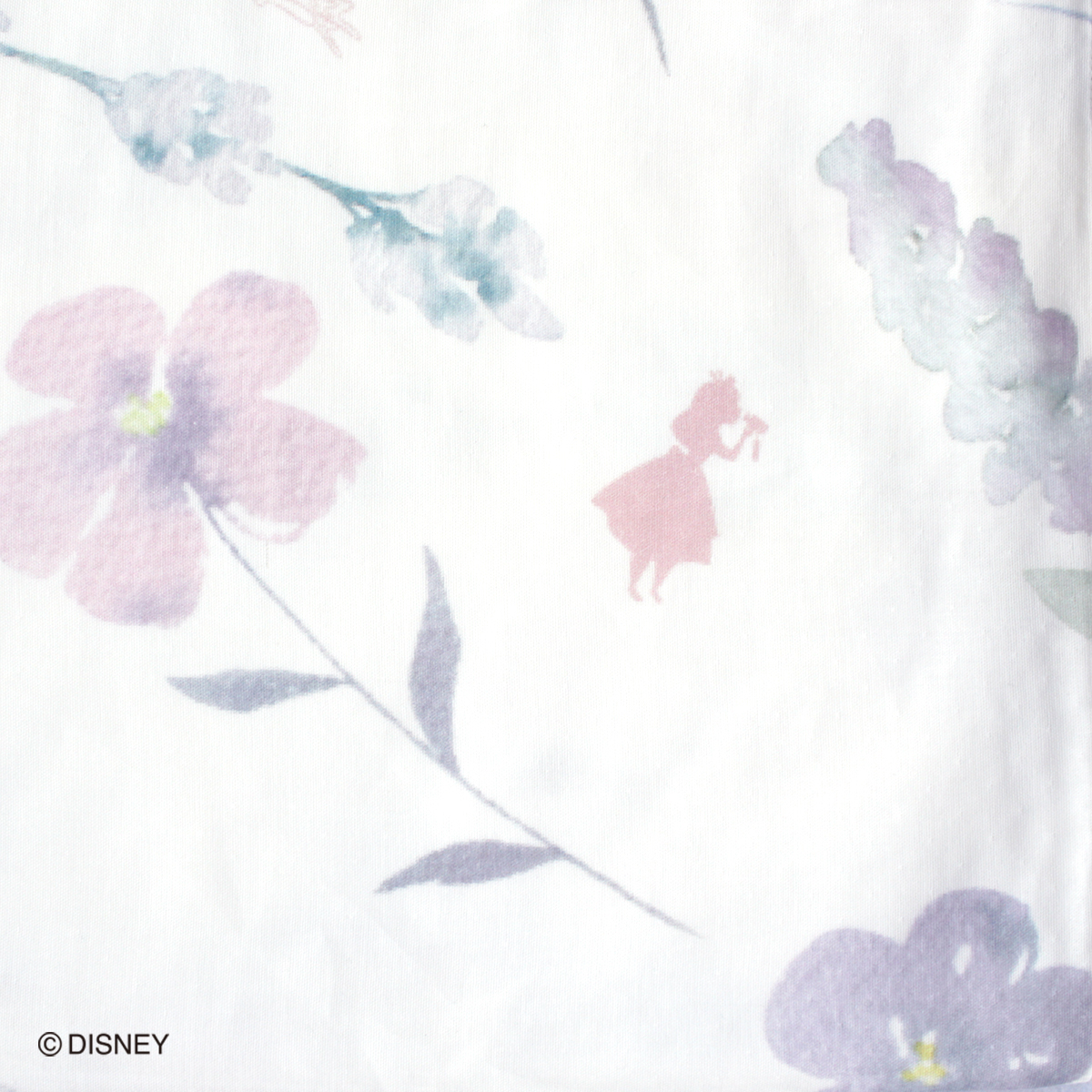 アリスのシルエットやお花たちを幻想的なカラーで表現しています。
