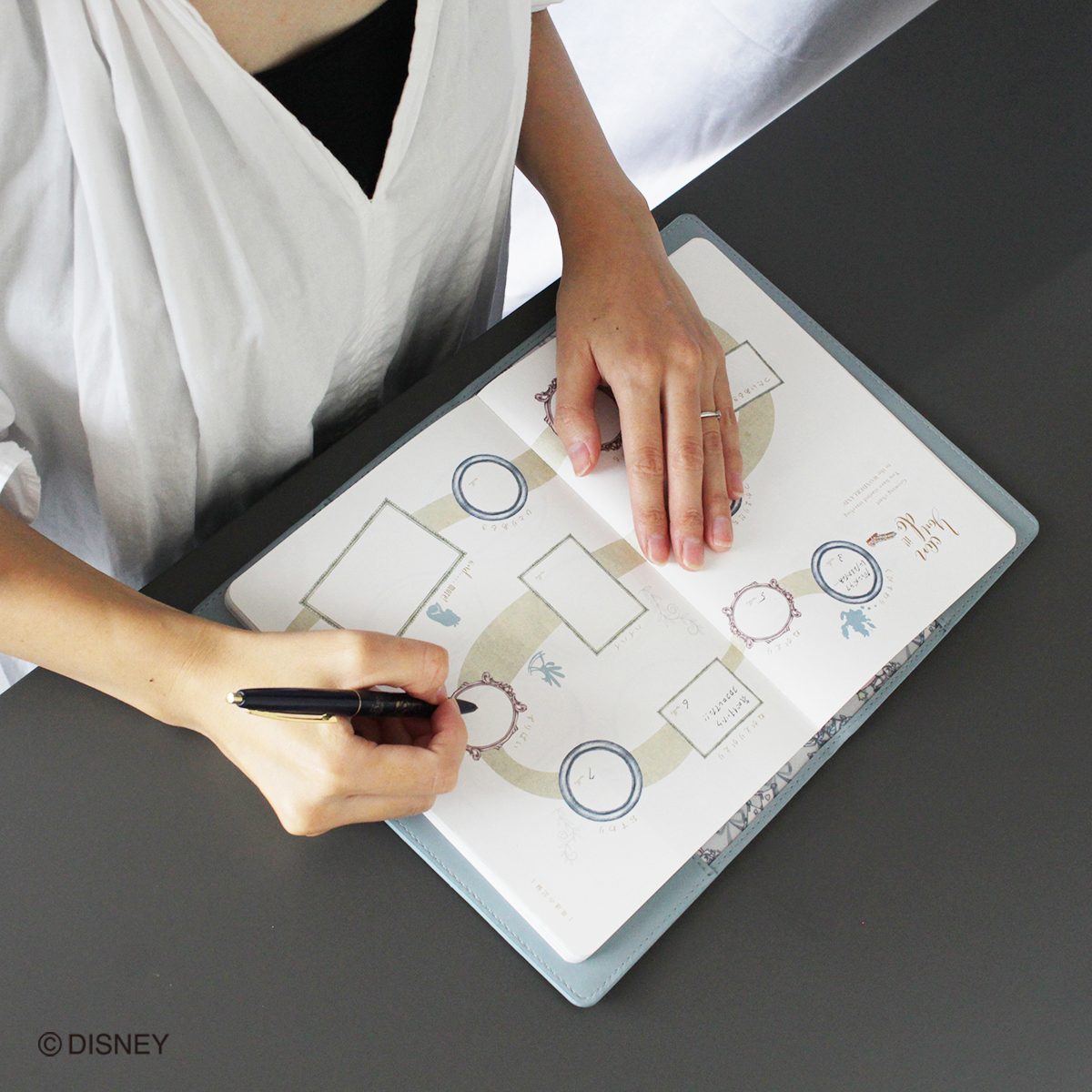 ティーカップやポットなど、お茶会のシーンに登場するモチーフが沢山デザインされています。