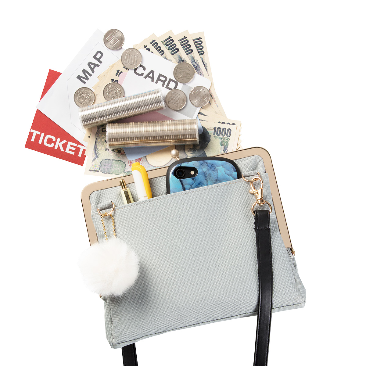 セット内容:スクエアポーチ、がま口ポーチ、ショルダー紐 各1個