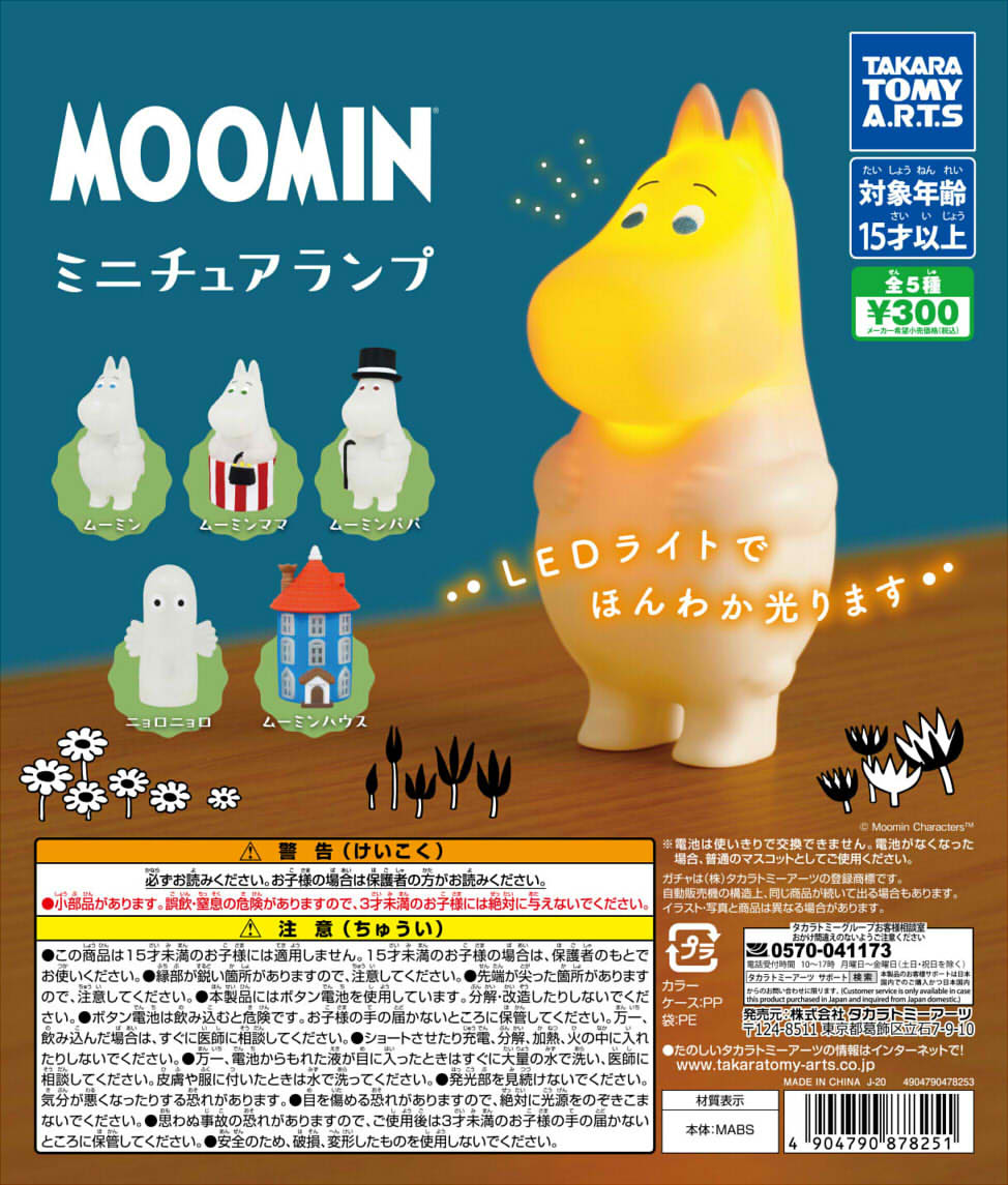 タカラトミーアーツのガチャから、LEDライトがほんわか光る「ムーミン」たちのミニチュアランプが登場。
