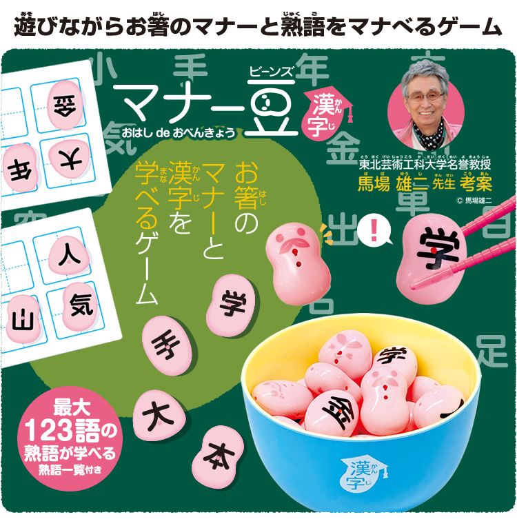 お箸のマナーを学べる大人気ゲーム「マナー豆(ビーンズ)」シリーズより、スタディシリーズ「おはしdeおべんきょう(漢字)」が登場!