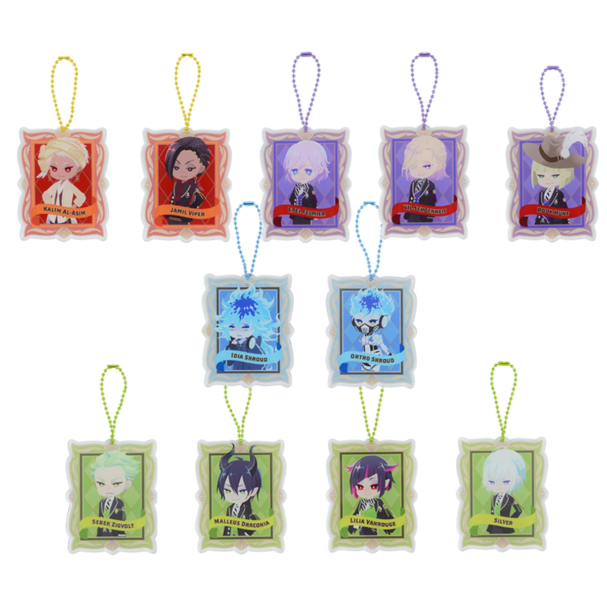 各寮のイメージカラーに合わせたボールチェーン付きのチャームが、全11種ラインナップです☆