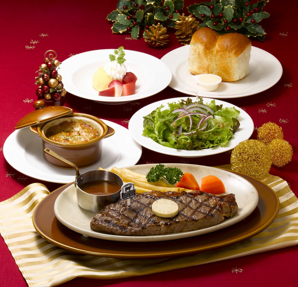 ロイヤルホストから、人気のアンガスサーロインステーキなどをいつもよりお得な価格で楽しめるクリスマスシーズン限定セットメニューが登場!